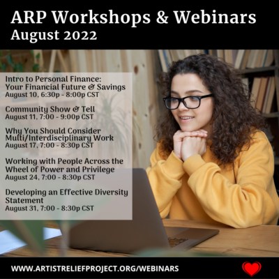Programs and resources are free and accessible to ARP members and artists who have requested support from Artist Relief Project.